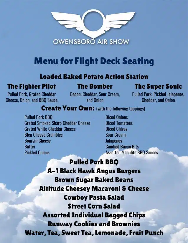 Get the best seats in town to view all of the action at the Owensboro Convention Center! The Owensboro Air Show is scheduled to run from 1PM – 4PM on Saturday and Sunday. Doors will open to the public at the Owensboro Convention Center at 11:30AM on both event days.