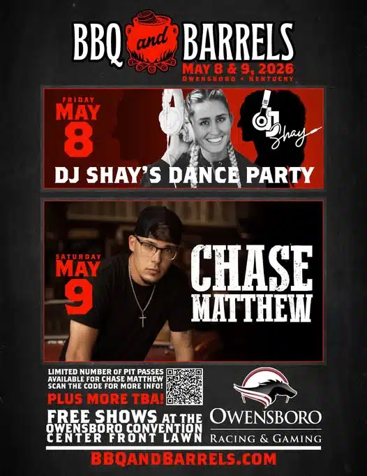 - Saturday Night: Country singer-songwriter, Chase Matthew. Limited VIP Pit Passes are available for purchase: https://www.etix.com/ticket/p/57120686/chase-matthew-pit-passes-owensboro-owensboro-convention-center