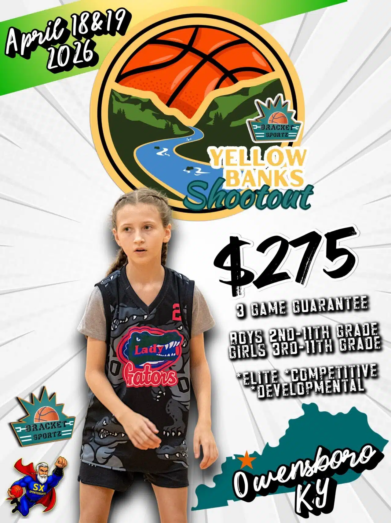 BRACKET SPORTZ PRESENTS… 2ND ANNUAL YELLOW BANKS SHOOTOUT WITH TEAMS COMPETING FROM IN, KY, OH, MO, & TN. GAMES WILL BE PLAYED IN THE OWENSBORO CONVENTION CENTER.