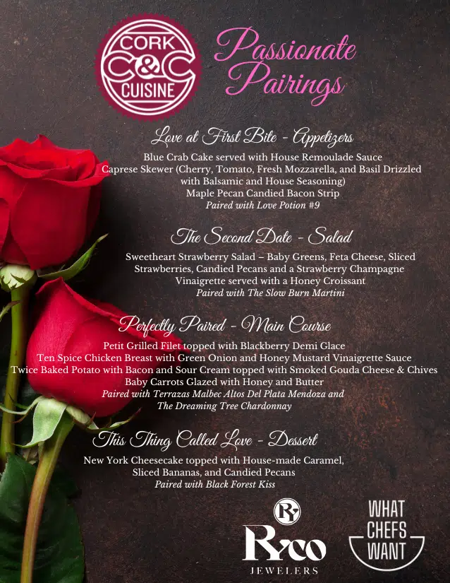 Cork & Cuisine, Passionate Pairings is sponsored by RYco Jewelers and What Chefs Want.